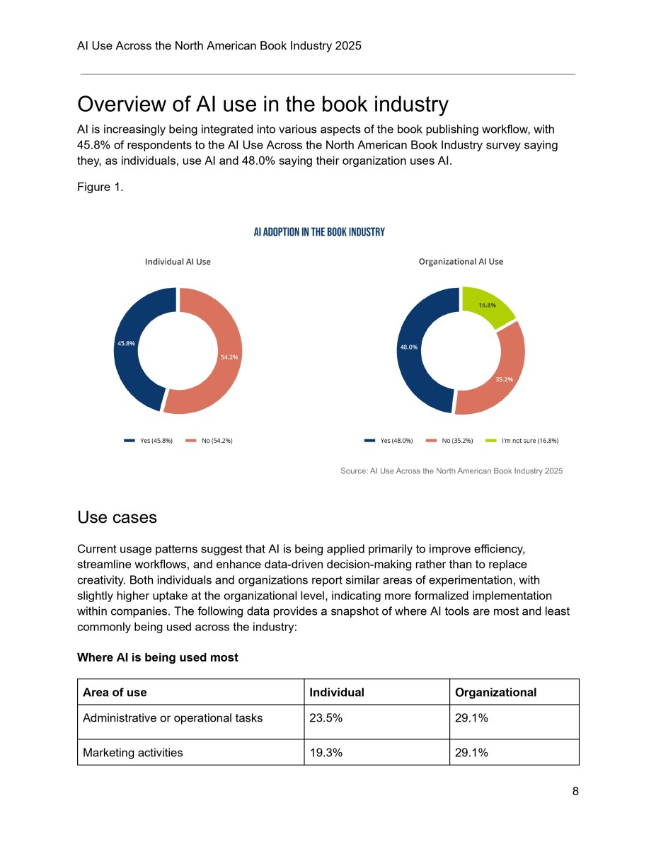 As AI continues to evolve, so too will its role in publishing. BISG and BookNet Canada plan to field the survey again in 2026, ensuring the industry has an ongoing, data-driven view of how adoption and sentiment are changing over time.